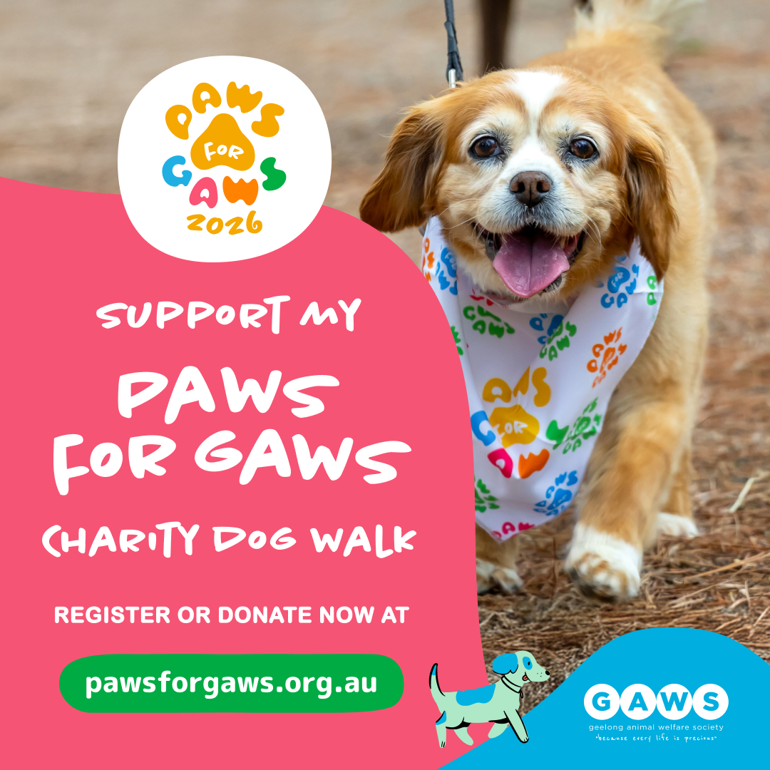 “Each year, Geelong Animal Welfare Society (GAWS) cares for around 3,500 animals and has a 90% reuniting, rehabilitation, and rehoming rate. GAWS is the only animal shelter caring for homeless and at-risk animals in the Greater Geelong region, as well as the Surf Coast, Burrough of Queenscliffe, and Golden Plains shires. It is not-for-profit and funded entirely by community goodwill and donations. Support GAWS today by donating to my PAWS for GAWS Charity Dog Walk fundraiser!”